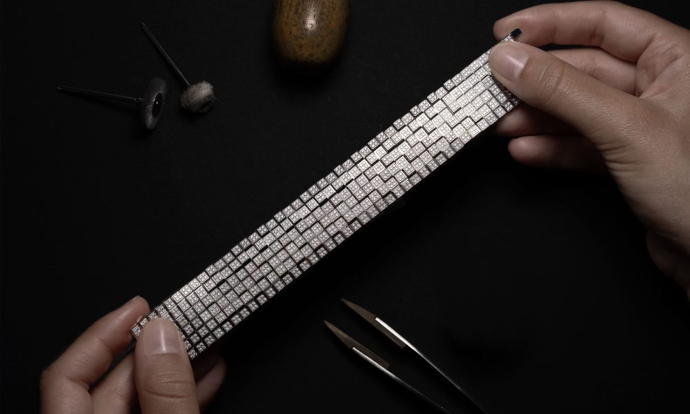 Criadas com o mesmo cuidado meticuloso, três novas pulseiras estão disponíveis nas variações de três ou seis fileiras, em ouro rosa ou ouro branco éticos, parcialmente ou totalmente cravejadas de diamantes. O broche, disponível com as mesmas opções de metal e engaste, traz uma ousada versatilidade sem género, concebido para ser usado em lapelas, colarinhos, gravatas ou até nos penteados