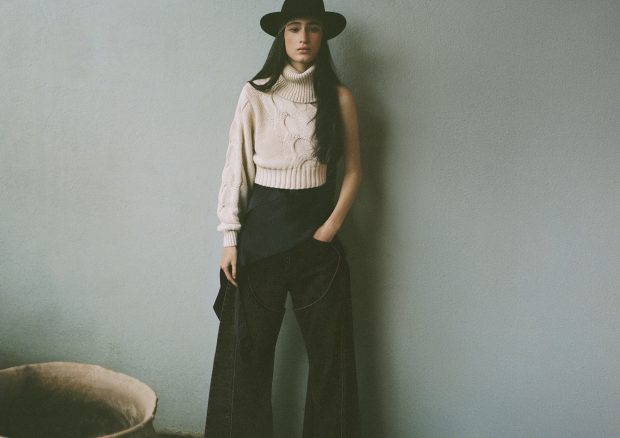 Em colaboração com a H&M, e para celebrar a primeira colab da marca com uma designer mexicana, Saravia apresenta uma coleção de 29 peças, que equilibra a força das silhuetas estruturadas — como o já famoso casaco de ganga e as calças de ganga com aberturas — com estilos sensuais para a noite, incluindo blusas drapeadas e vestidos sem costas.
