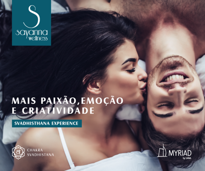 A Svadhisthana Experience, do SPA Sayanna Wellness do Myriad by SANA, é uma experiência de massagem em casal que estimula as emoções e ajuda a descobrir a importância do chakra Svadhisthana que está associado ao domínio do sentimento de bem-estar.