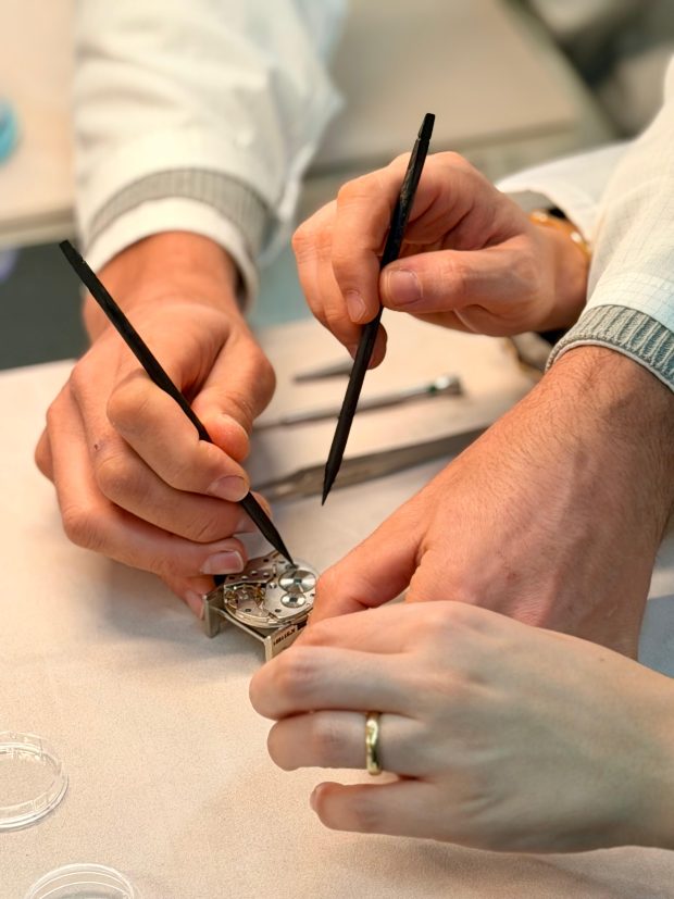 Com um formato exclusivo para apenas 12 convidados, o evento destacou-se pelo seu carácter altamente interativo. Na área da relojoaria, os participantes tiveram a oportunidade de integrar um workshop conduzido pela equipa da Marcolino Link, explorando de perto o funcionamento interno de um relógio mecânico. Esta experiência permitiu compreender a interação entre os diferentes componentes e o nível de detalhe exigido na manutenção e reparação relojoeira.
