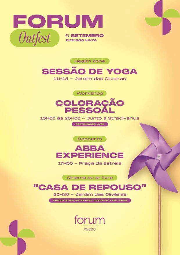 No próximo dia 6 de setembro, o Forum Aveiro vai preparar a despedida do verão com o Forum Outfest, um evento que junta cultura, bem-estar e entretenimento, com múltiplas experiências para todos os gostos, entre as 11h e as 23h.