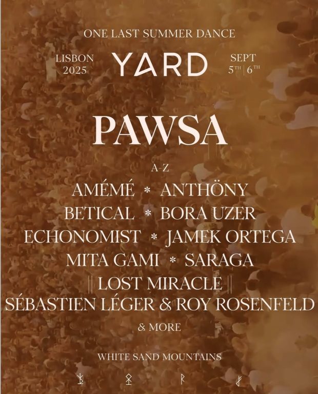 Nos dias 5 e 6 de setembro, as White Sand Mountains voltam a receber a YARD, um dos festivais mais imersivos e aguardados do verão português. Este ano, a despedida da temporada promete ser inesquecível, com dois dias de celebração intensa onde a música eletrónica, a dança e a comunhão com a natureza se encontram num cenário deslumbrante de areia branca. O cartaz reúne alguns dos nomes mais respeitados da cena internacional, numa curadoria que aposta em sonoridades capazes de transportar o público para uma viagem sensorial marcante.