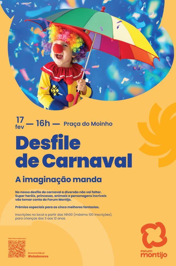 No dia 17 de fevereiro, a partir das 16h, o Forum Montijo vai transformar-se no palco mais colorido da região, onde a imaginação é a grande protagonista. Todas as crianças dos 3 aos 12 anos estão convidadas a vestir a sua melhor fantasia, dar asas à criatividade e desfilar num ambiente cheio de cor, música e muita alegria!